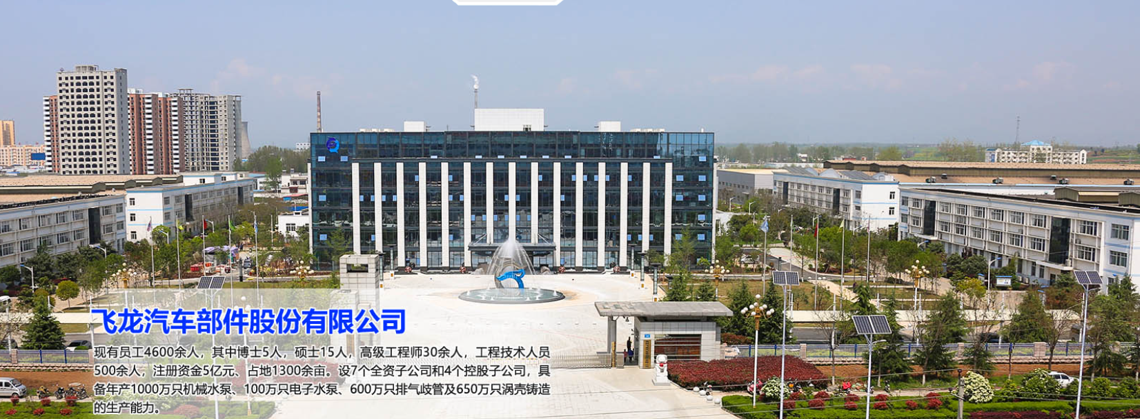 飞龙汽车部件股份有限公司建于1952年,1964年开始生产汽车配件,具有近60年生产汽车配件的历史,是国内汽车零部件生产的重要基地,是河南省汽车零部件的重要出口基地。主导产品为汽车水泵,发动机进、排气歧管,增压器涡壳,电子泵系列产品(13W、18W、30W、60W、100W、120W、1500W、2000W……),真空泵、机油泵等,汽车水泵国内市场占有率达25%,增压器涡壳市场占有率达20%,2020年汽车水泵被国家工信部认定为制造业单项冠军产品。公司现有职工4300余人,具备年产1000万只机械水泵、300万只电动水泵、120万只热管理控制阀、600万只排气歧管及800万只涡壳铸造的生产能力。拥有生产、试验、检测设备万余台(套),开发、生产能力居国内同行业领先地位。国内乘用车主要客户有上汽通用、上海大众动力总成、一汽大众、上海汽车、长城、奇瑞、广汽集团、比亚迪、长安汽车、长安福特、长安马自达、神龙公司、柳州五菱、吉利汽车、北汽动力、小康工业、东安动力、航天三菱、东风柳汽、柳机、柳州菱特、东风乘用、江淮汽车、江铃公司、云内动力、东风日产、一汽丰田、丰沃公司、菱重增压器、一汽红旗、华域麦格纳、观致汽车等;国际乘用车主要客户有GM、Ford、VOLVO、PSA、 BorgWarner、Garrett、KEYYANG、VINFAST、Bosch、BHL等;国内商用车主要客户有潍柴、锡柴、上柴、重汽、玉柴、三一重工、福田康明斯、上菲红、东风康明斯、西安康明斯、重庆康明斯、广西康明斯、安徽康明斯、上汽大通、联合动力、华菱汽车、无锡动力、大柴、东风商用、河北华柴、菱重发动机、集瑞重工、福田发动机等;国际商用车主要客户有Cummins、Daimler、Scania、Deutz、CNH、MERCURY、Danfoss、AGCO、Nikola、MTU、Witzmann、PSI等,目前,公司拥有国内外客户120家,服务于全球205个基地和工厂,其中新能源客户35家。